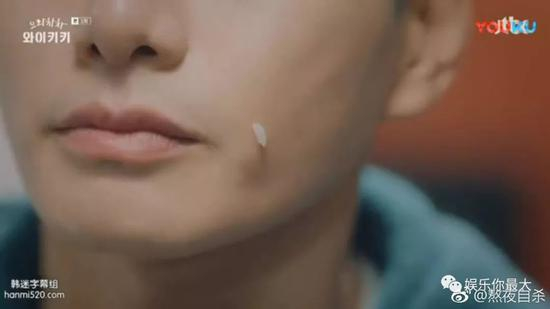 必杀技又一次登场!前辈反复指着自己的脸颊,示意他弄掉米饭……