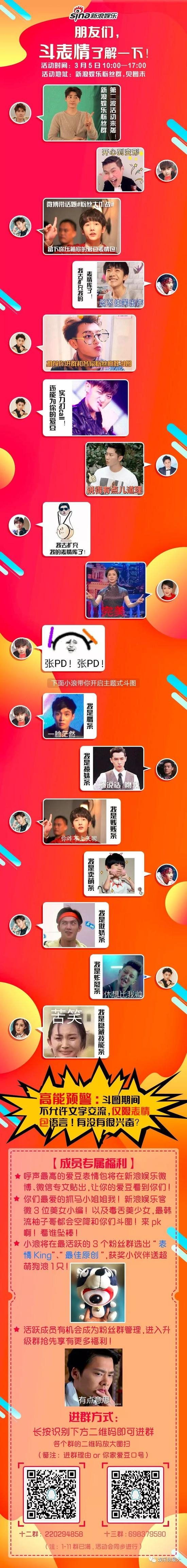 新浪娱乐粉丝群开通啦!想第一时间获取娱乐资讯吗?想认识更多志同道合的小伙伴吗?想和你的爱豆近距离接触吗?快来加入我们吧。