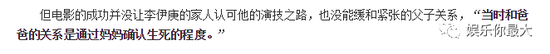 因为坚持要走演员道路,父子关系一度还紧张到“当时和爸爸的关系是通过妈妈确认生死的程度。”