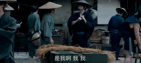 33、阿妙把银桑送走的感人桥段之后,近藤勋突然从榻榻米里冒出来耍帅,用歌舞伎的方式来了句“请交给真选组来处理吧”。这个也是原作里没有的内容,是个结合演员自身背景的梗,因为饰演近藤勋的中村勘九郎本身就是个歌舞伎役者。