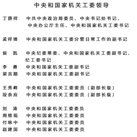 中央和国家机关工委领导名单 丁薛祥兼任书记 孟祥锋任副书记