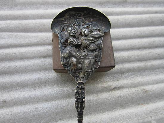 4)用火烧:火烧白银会变黑红,仿制的白铜或铝合金则不会,镀银制品时间长会露出"本色"。