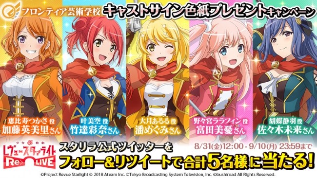 于9月20日在东京幕张国际展览中心举行的东京电玩展内,将分在业内日及公众日举行特别舞台活动。其时会有小山百代(爱城华恋役)和野本ほたるさん(雪代晶役)等豪华嘉宾来场。