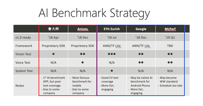 以往说到对一款芯片的性能评判,最简单粗暴的方式就是借助于跑分软件,例如知名的GeekBench、3DMark、安兔兔、鲁大师等,这些性能测试软件在曾经的CPU+GPU协作时代闻名遐迩,一度成为对性能评估的直观工具。但是面对AI芯片复杂而不断迭代的运算模型和跳出传统框架的算力逻辑,使得传统测试软件对AI芯片的测试方法追赶已显得力不从心。