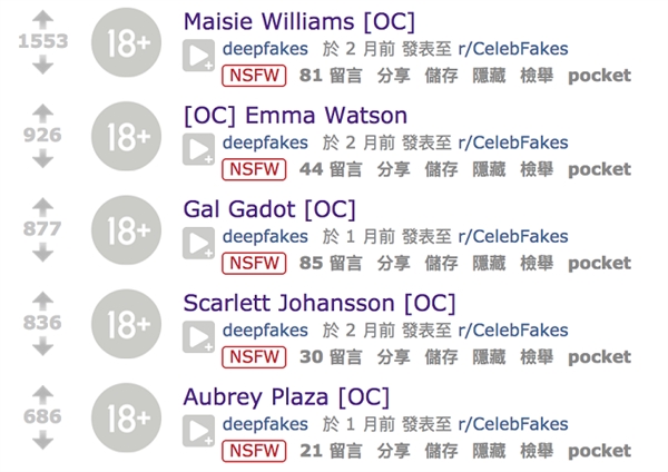 此前网络上就曾出现过利用AI学习来对视频中人脸进行替换的技术,随后这项技术很快就被运用到了色情行业中,尤其是一些制作者用来制作“换脸明星色情片”,顾名思义,就是将明星的脸与色情片中的女优进行互换,而且部分影片非常真实,不过很快遭到了国外主流媒体的限制和封锁。尽管Reddit之类的大型网站采取了一定的措施,但出于自身的利益的考虑,并未对AI换脸色情片做到彻底封杀。或许,这就是为何人们可以继续顺畅无阻地在P站见到明星的DeepFakes换脸色情片,而不会遇到任何阻碍的原因。