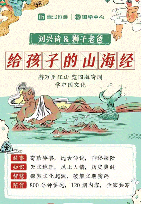 4月15日,第五届喜马拉雅423听书节全面开启。《刘兴诗爷爷&狮子老爸:给孩子的山海经》作为喜马拉雅上新的精品优质内容之一,以“新国学”为核心内容点,一方面为亲子共读带来好玩有趣又通俗简单的故事内容;另一方面通过深入、权威的内容讲解和知识科普,将优秀的出版作品打造为适合青少年收听的亲子国学有声IP,帮助少年儿童更好地读经典、读文物、读历史、读人物。