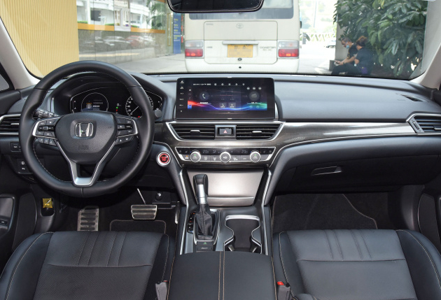 来到车内,雅阁的内饰整体都有了提升,不但更换了大尺寸的悬浮式中控屏,就连车机系统也有了提升。从整体来看,雅阁的内饰虽然算不上豪华,但是整体布局依然可以让人一目了然。不过与前两款车相比就会比较逊色。