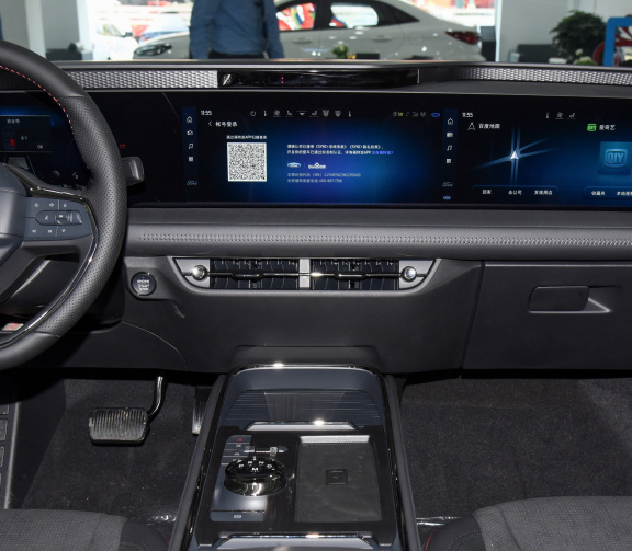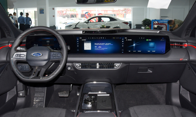 来到车内,全新一代的蒙迪欧搭载了1.1米超广域高清巨幅屏,在这块超广域的屏幕中蒙迪欧整合了12.3英寸全彩数字液晶仪表盘和27英寸超大4K中控屏,科技感瞬间被拉满。