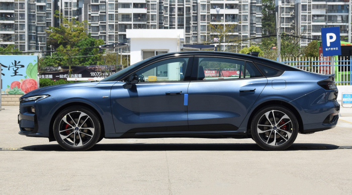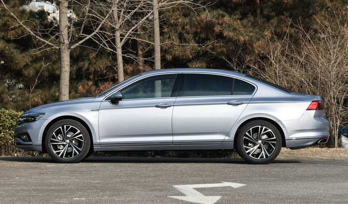 迈腾的侧面则并没有采用过多的装饰,毕竟要满足它自身的行政风格,所以车身侧面只有一条腰线来勾勒车身,但五幅式轮圈的搭配使它在运动上的感觉又增强了一些。